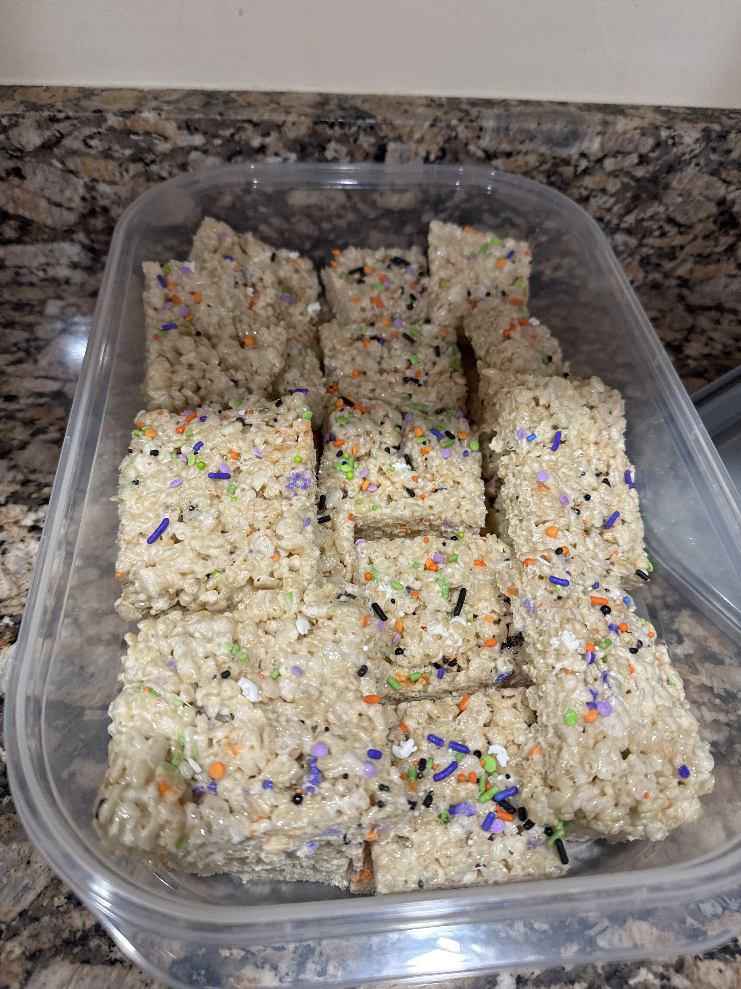 These “spooky” rice krispie treats were my contribution to a Halloween party we went to and they were a hit!